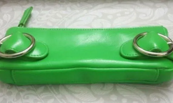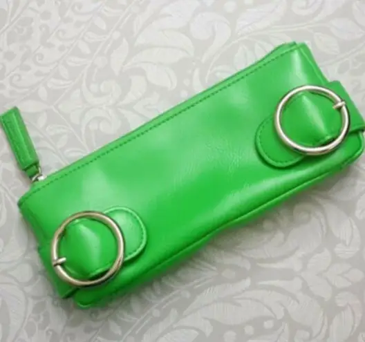 BeautiControl Green Vinyl Retro Zip Top Mini Bag Clutch Buckle Accents. Zipper works. Green poly-vin... Show more