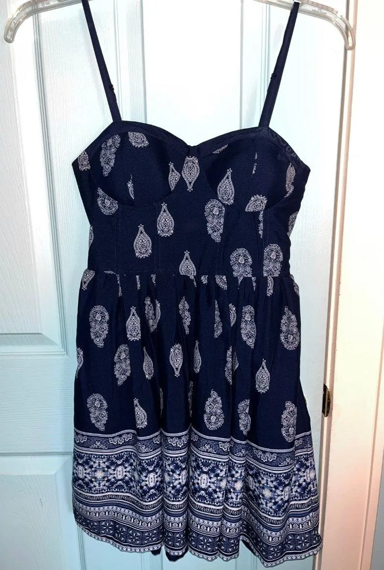 Band of Gypsies Dress Blue and white paisley design Padded bra Elastic stretch back Adjustable strap... Show more