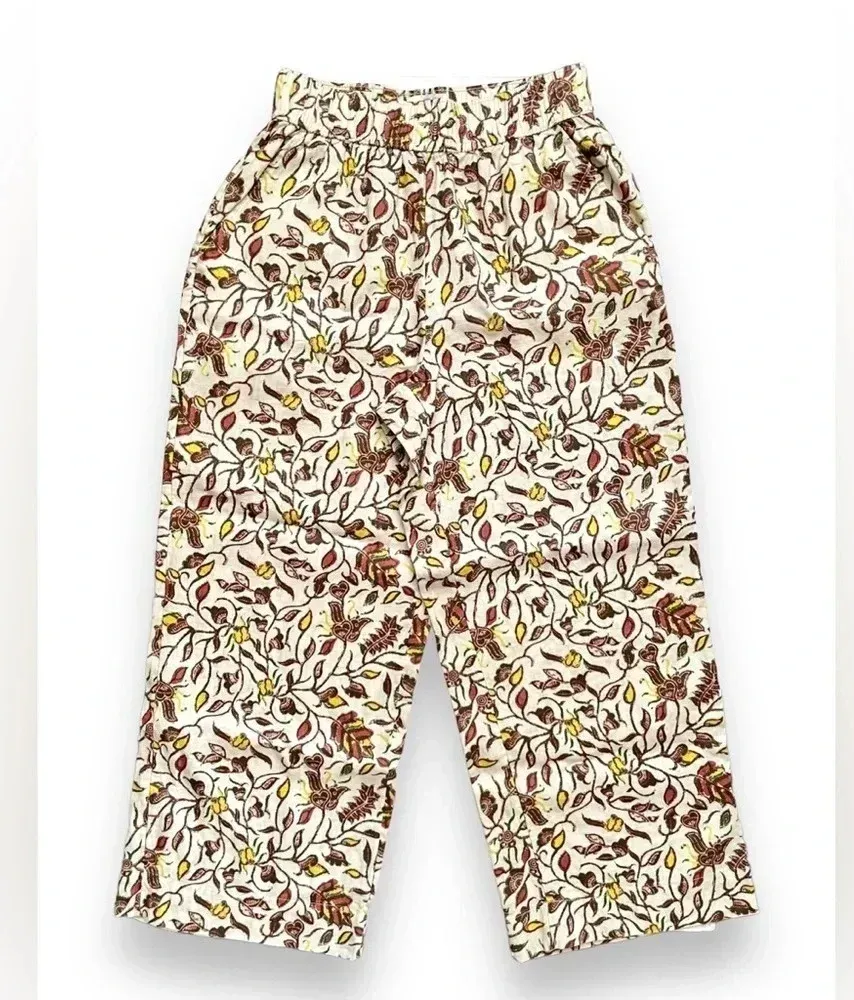 Rachel Zoe botanic print linen cropped wide leg pants. Front pockets and elastic waist. Natural crea... Show more