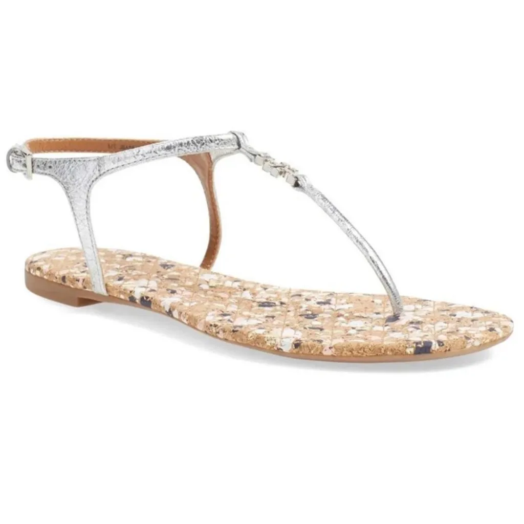 TORY BURCH Marion Confetti Cork T-Strap Silver Metallic Leather Thong Sandals 7.5 These fabulous th... Show more