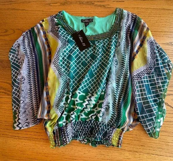 Metro 22 Tunic Top Women 1X Embellished Sheer Lined Green Geometric Short Sleeve - $28 (41% Off Retail) New With Tags - From Heather