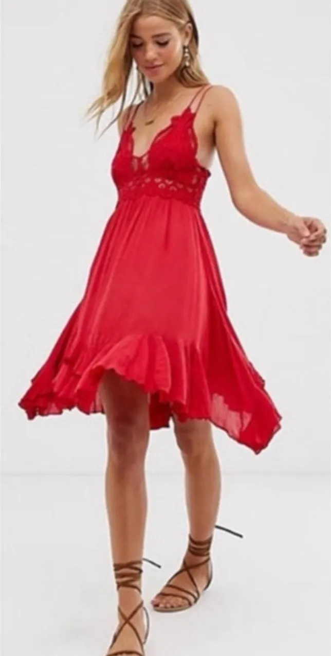 Red Ruffled Tiered Mini Dress for Wedding Guest - $80 - From Candy