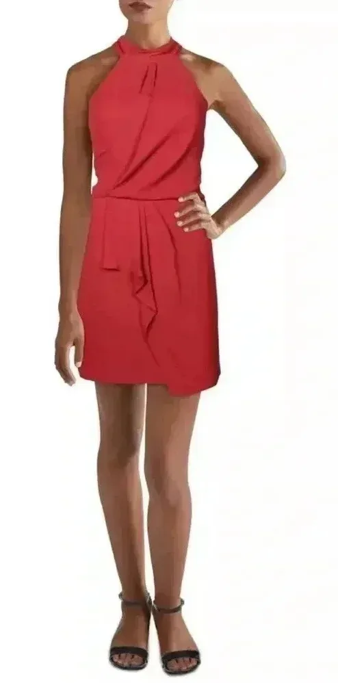 Halston‎ Womens Jade Sleeveless Faux-Wrap Halter Mini Dress Size 8 Red - $45 New With Tags - From Isabel