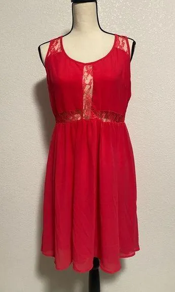 Forever 21 Hot Pink Peekaboo Lace Chiffon Mini Dress Size L - $25 - From Stephanie