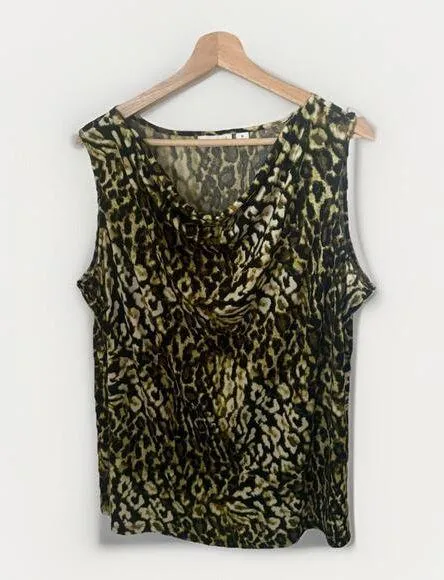 Susan Graver Leopard Print Cowl Neck Green Brown Sleeveless Top Blouse Women 1X - $28 - From Cammie