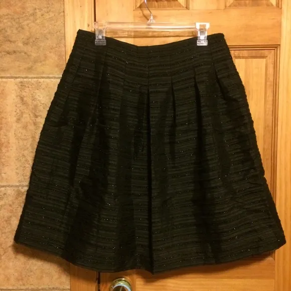 Material designed on skirt shines and sparkles in the light. Has lining. No stretch. Full & mid leng... Show more