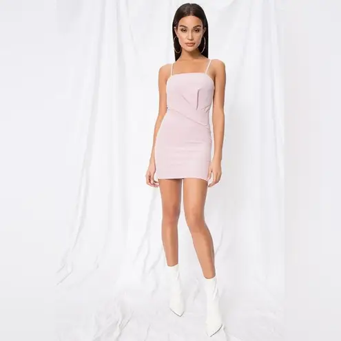 superdown revolve dress, pink bodycon mini, mauve party dress, square neck dress, spaghetti strap mini, pastel pink dress, cocktail clubwear, modern feminine style, satin look dress, spring wedding guest, going out dress, girls night outfit, blush pink mini, ruched front dress, sleek fitted dress, sexy minimalist dress, pastel aesthetic outfit, Y2K inspired mini, dusty rose dress, Revolve brand dress