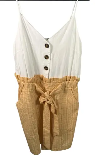&Merci‎ Gingham Paperbag Waist Tie Romper Size M Yellow White Button Front Size M - $25 - From Tracie