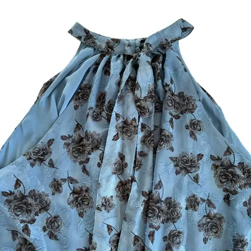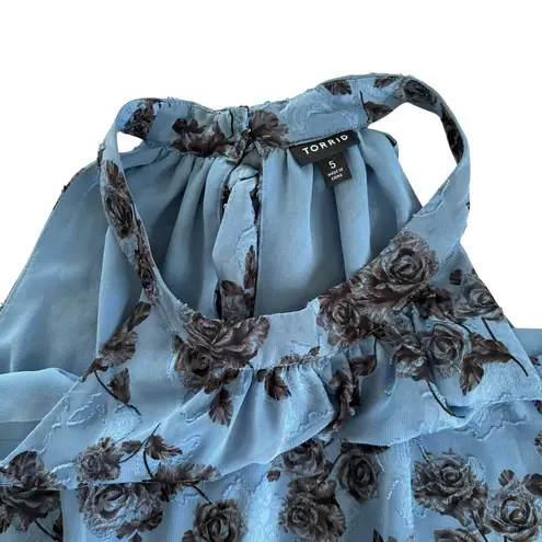 Features: Torrid Romantic Rose Blue Floral Print Chiffon Mock Neck Halter Top Blouse; Mock turtlenec... Show more