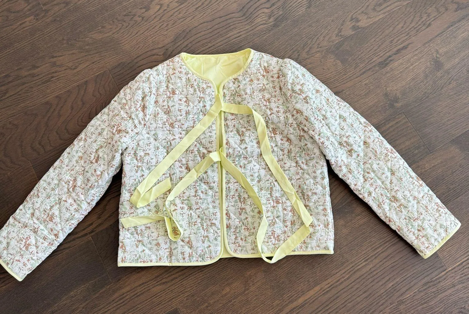 Yousify Womens Cropped Puffer Jackets Floral Print Tie Open Front Lightweight Quilted Jacket Yellow Size M - $17 (62% Off Retail) - From Christy