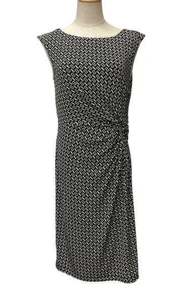 White House Black Market Women's Geometric Shirred Waist Sheath Dress Formal Size L