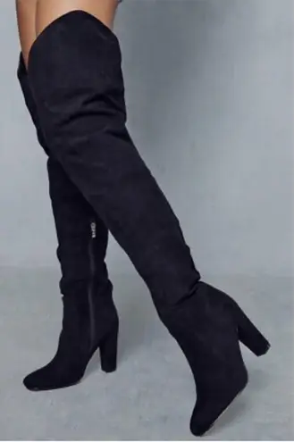 Stylish black over the knee boots with a sleek design. Made with textile upper and man-made outsole.... Show more