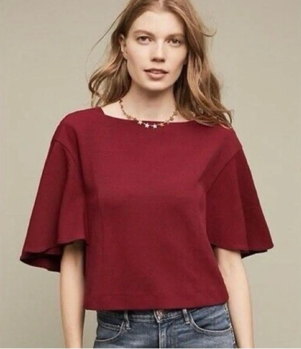 Anthropologie Eri + Ali Textured Flutter Sleeve Crop Top in Burgundy Red. Made of textural, touchabl... Show more