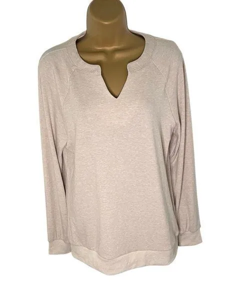 Brand: Eadinve Features: Split Neckline, Ribbed Hem, Long Sleeves, Stretch Fabric, Relaxed Fit, Pullover Size: Small Pit to Pit 19.5” across Length 26.25” Condition: NWT w/ some darkened areas that are brought out more with lighting Age: Modern Color: Beige, Oatmeal Fabric: 35% Cotton 60% Polyester 5% Spandex Care: Machine Wash Where I Was Made: China Expected Ship Time: 2-3 BUSINESS days Reasonable offers always welcome. Comment any questions. clean girl, minimal, loungewear, off-duty model, softcore, casual chic, capsule wardrobe, neutral aesthetic, quiet luxury, effortless style