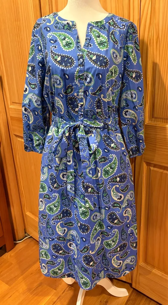 Croft & Barrow Blue Paisley shirtdress with a button-up front, a tie-belt at the waist, and a paisle... Show more