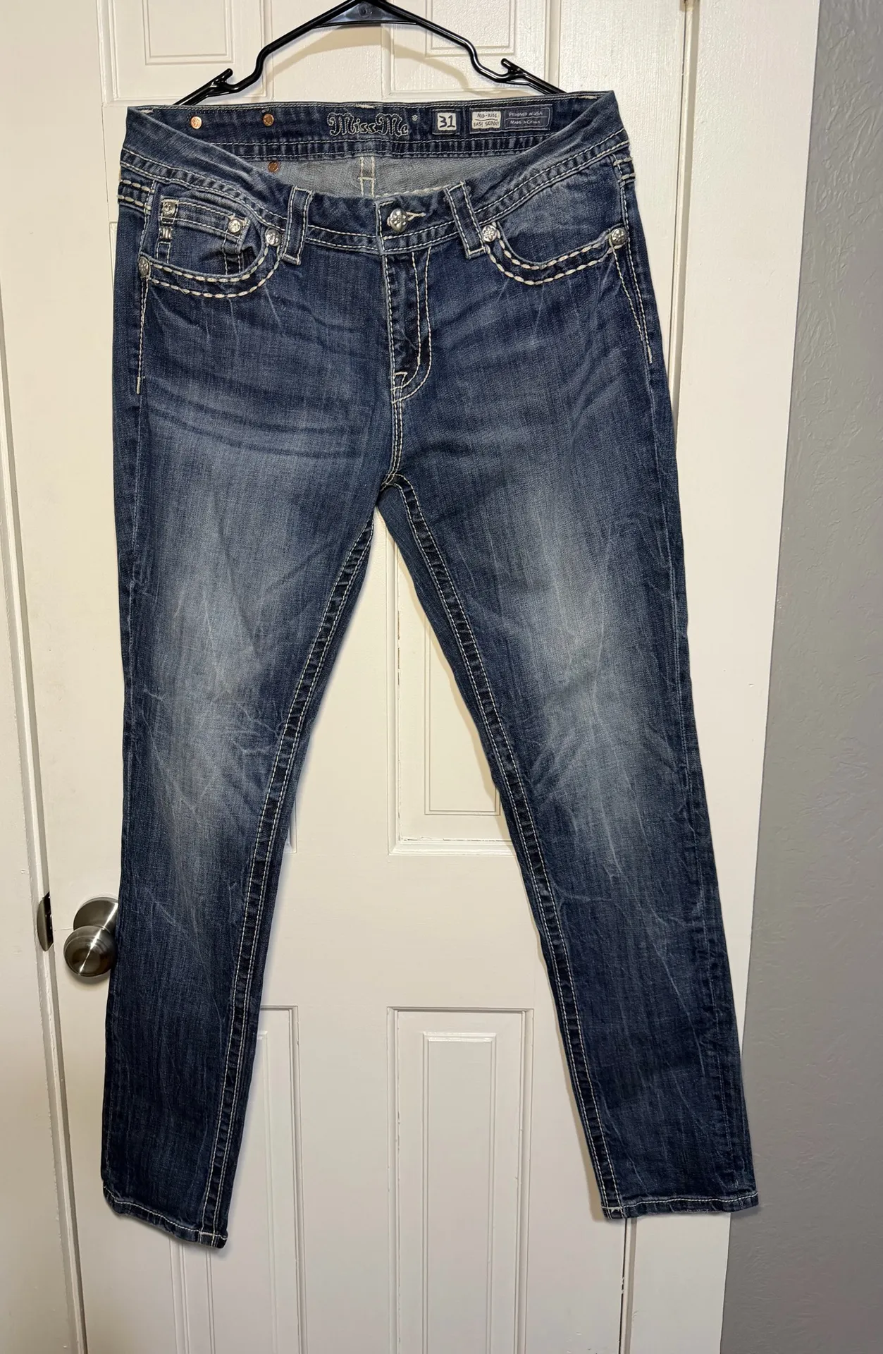 VTG Miss Me Silver Mid Rise Easy Skinny Jeans Size 31. Embroidered & Embellished. Style # JE8152ESSL... Show more