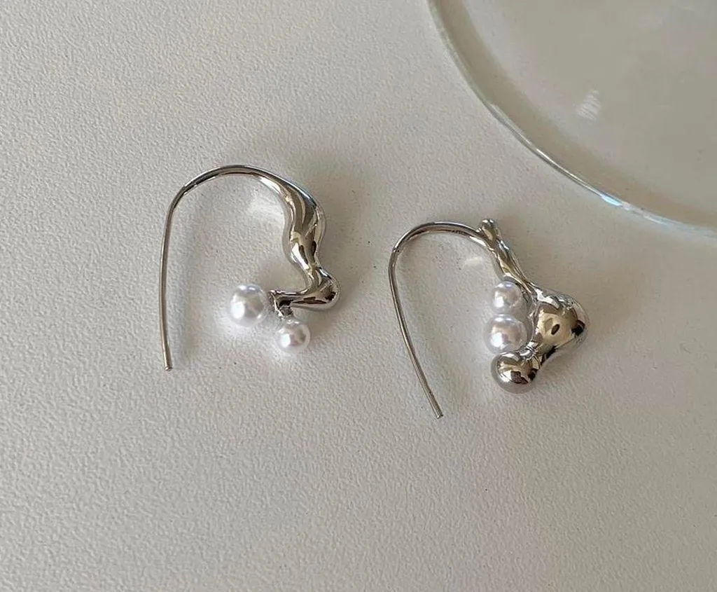 Irregular hoops earrings pearl hoops earrings silver hoop earrings minimalist design - $26 New With Tags - From Boutiquejbylee