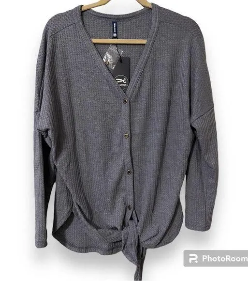 IWOLLENCE size medium womens v neck waffle knit long sleeve tie front blue grey - $20 New With Tags - From Melissa