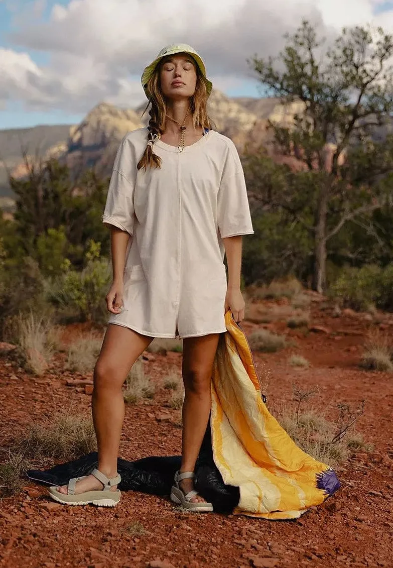 Hot Shot Tee Romper from Free People Movement. Color is Clay (cream) Features soft fabric with a str... Show more