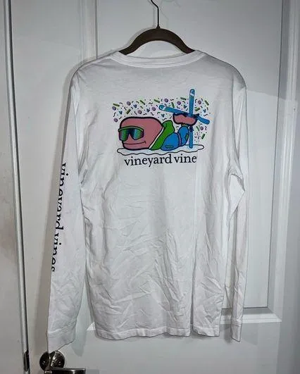 The Vineyard Vines Snow Ski Whale Design White Cotton Long Sleeve T-Shirt in Size XL is a quintessen... Show more