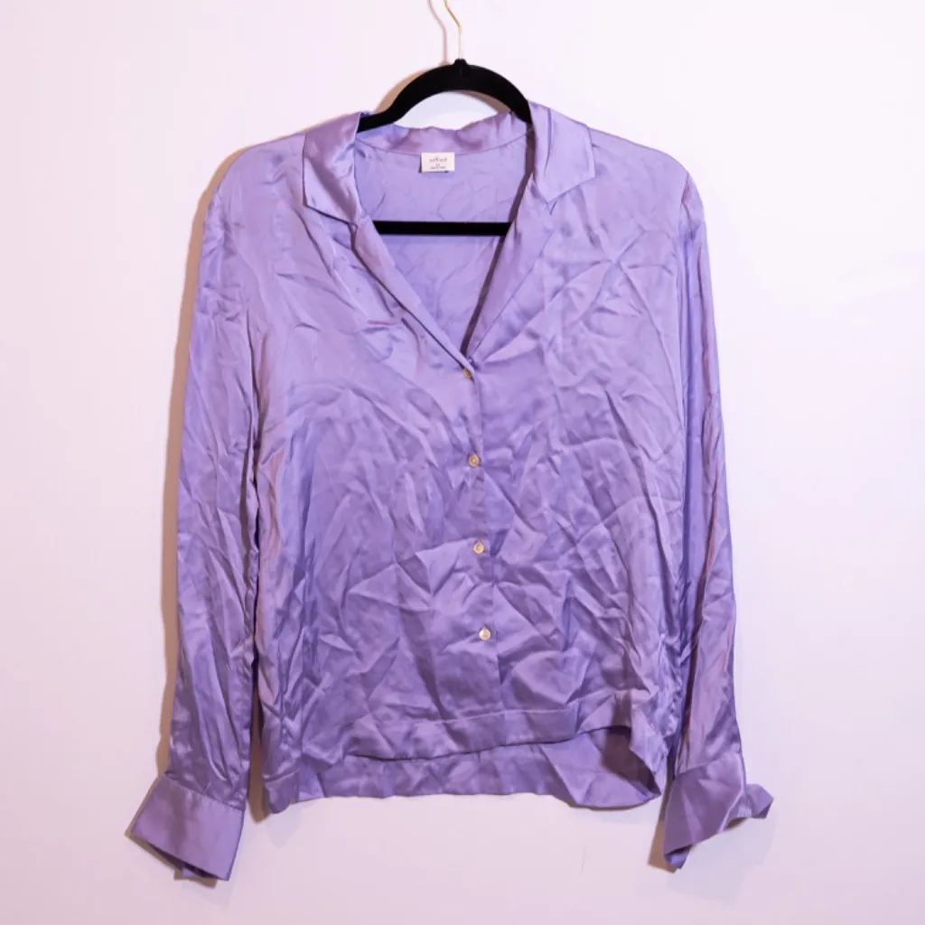 Wilfred Aritzia Peaufiner Satin Collared Long Sleeve Button Blouse Soft Lilac XS Content: 100% cupr... Show more