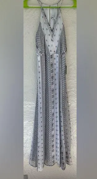 NWT Express fully lined, silver, white halter neck, back slit maxi dress; XS Gray - $36 (72% Off Retail) New With Tags - From Kate