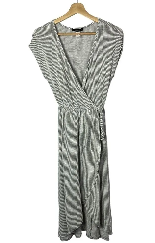 Urban Outfitters UO Caution to the Wind Gray Stripe Wrap Midi Dress Excellent used condition, no vi... Show more
