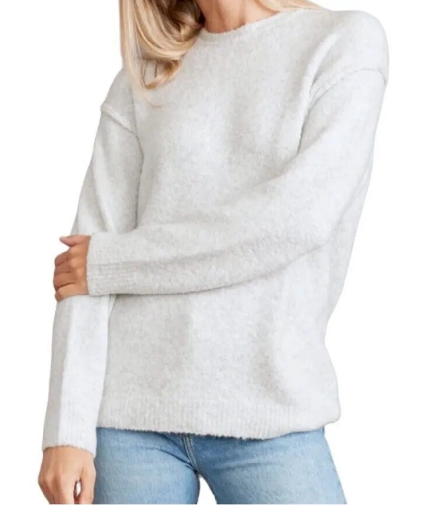 Color: Gray Size: Medium -slightly textured boucle fabric -added spandex for stretch -some pilling visible due to the fabric Material: 37% Nylon, 31% Polyester, 25% Wool, 6% Alpaca, 1% Spandex Care: Wash delicate, lay flat to dry Style tags: sweater, wool, alpaca, wool blend, neutral, boucle, soft, cozy, warm, gorpcore, winter