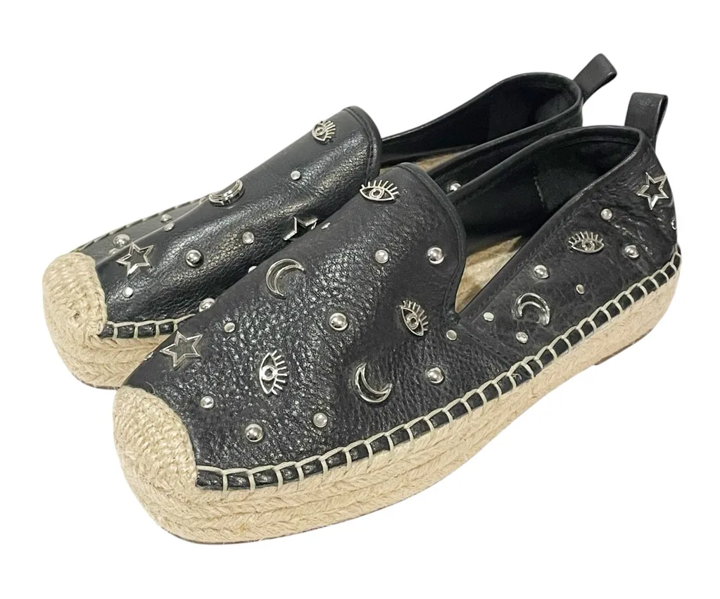 Rebecca Minkoff Size 6.5 Black Leather Moon & Stars Charm Beatriz Espadrilles Size 6.5 Excellent Pr... Show more