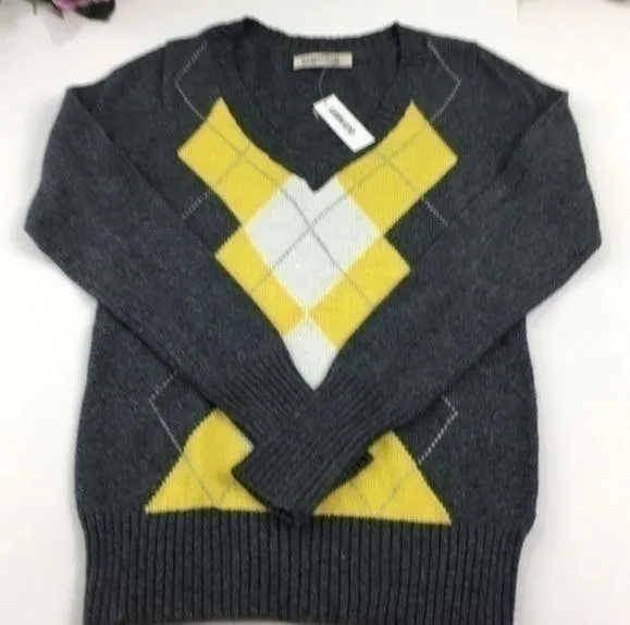 old navy ladies sweater pull over color gray and yellow bust 32 length 24 new with tag