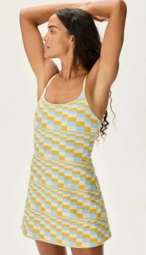 Excellent Condition. No Callouts Size: XS Color: Yellow and Blue A dress for freer, fuller movement... Show more