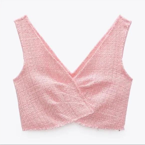 Zara Pink Tweed Top Tank Crop Cropped Fringe S - $24 (52% Off Retail) - From Evelyn