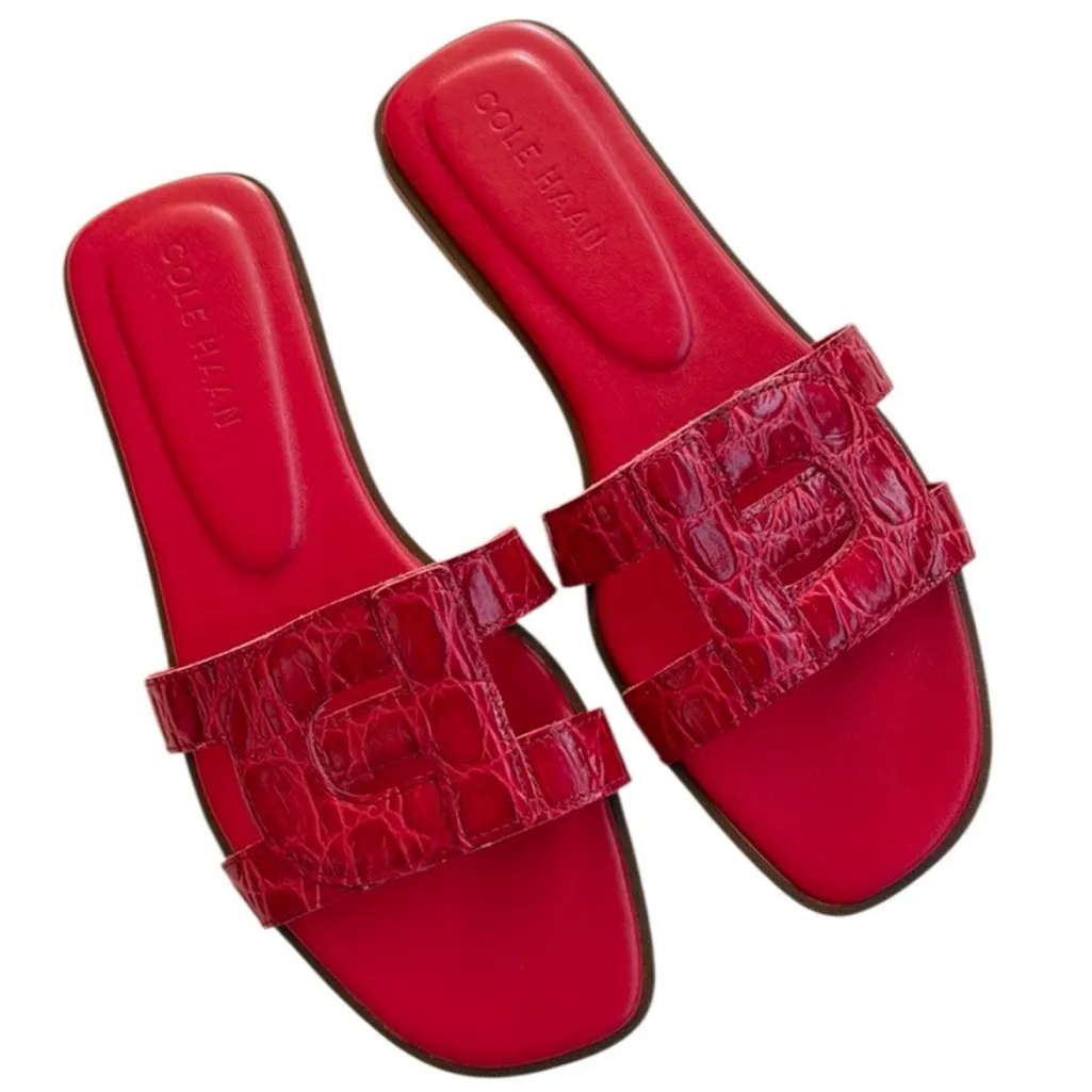 New without tags; Red croc embossed leather uppers; cushioned footbed; smoke free home.