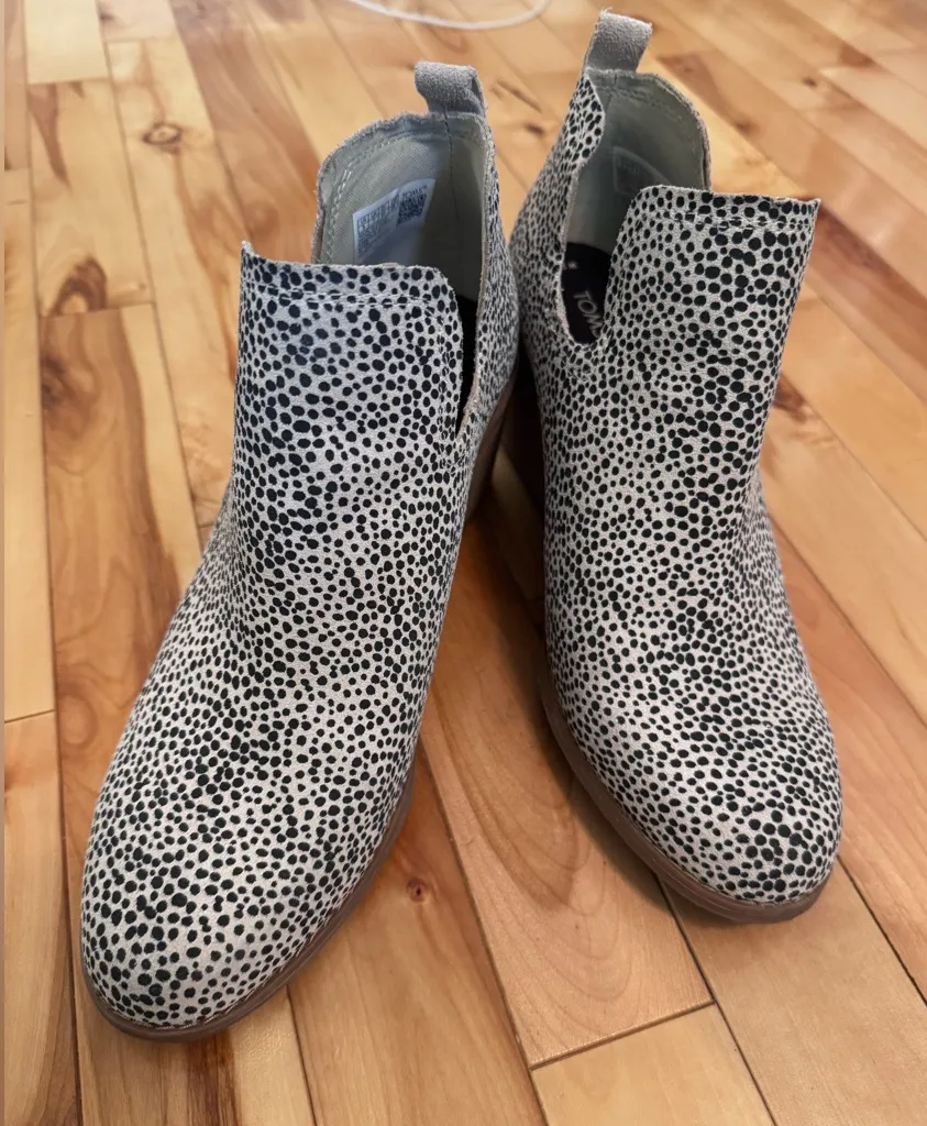 EEUC TOMS Marta Wedge Booties Dalmation Animal Print Suede Sz 9 Ortholite Black - $20 (79% Off Retail) - From Mary