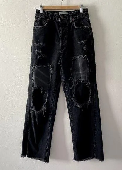 We the Free, Free People High Rise Distressed Jeans Size 27 Black Preowned good condition 1683 Free... Show more