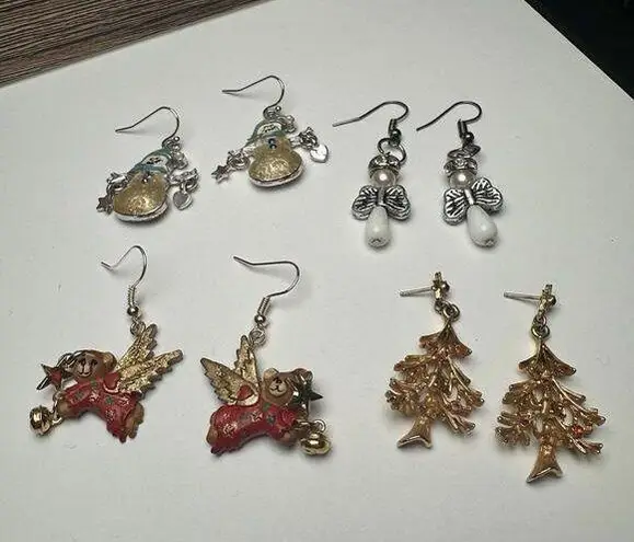 Angel Bear, Christmas Tree, Snowman Etc Pierced Dangle Drop Earrings Lot Of 4 - $17 - From Charlsey