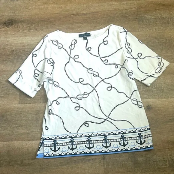 Women's Nautical Anchor-Print Elbow-Sleeve Top White & Blue Size L Size L - $15 - From Shopdevinetrend