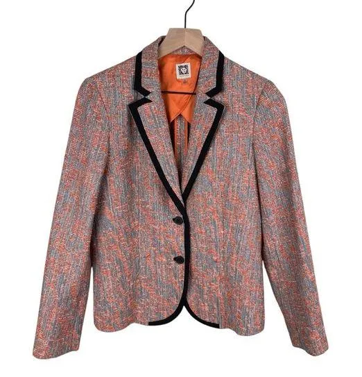 Anne Klein Navy Blue Orange Tweed Blazer Jacket Navy blue and orange tweed with navy blue trim Two... Show more