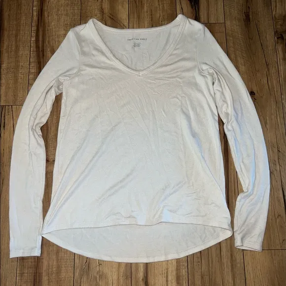 long sleeve thin sweater material shirt from the brand american eagle light cream color size xs