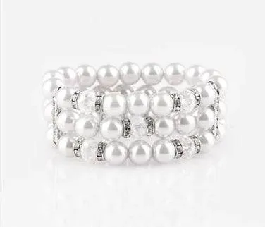 Brand new bracelet in original packaging. Pinched between white rhinestone encrusted frames, white... Show more