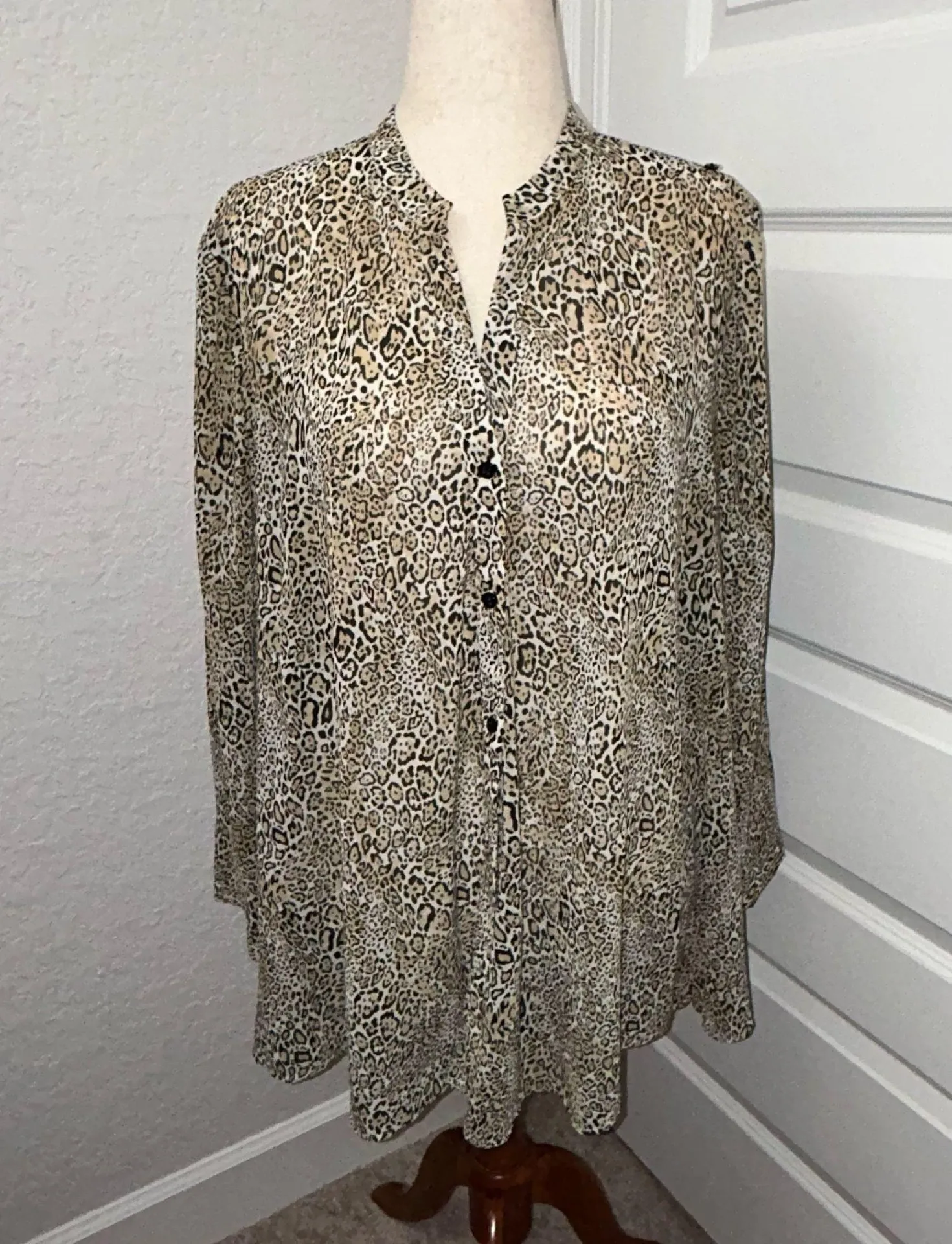 Chico’s Animal Print Button Down Long Sleeve Blouse Shirt Tunic Top Chicos Size 3/XL Color Black, Ta... Show more