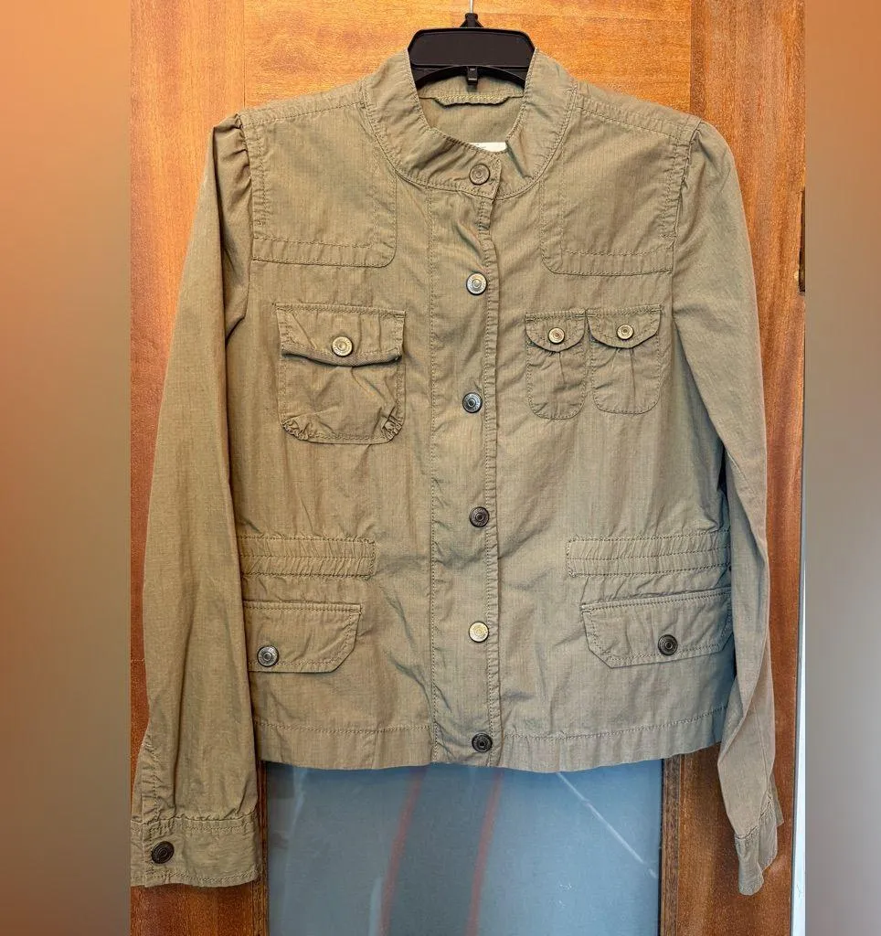 LOFT Lightweight Cinch Waist Military Utility Olive Green Jacket Size: Medium 100% cotton Zipper a... Show more