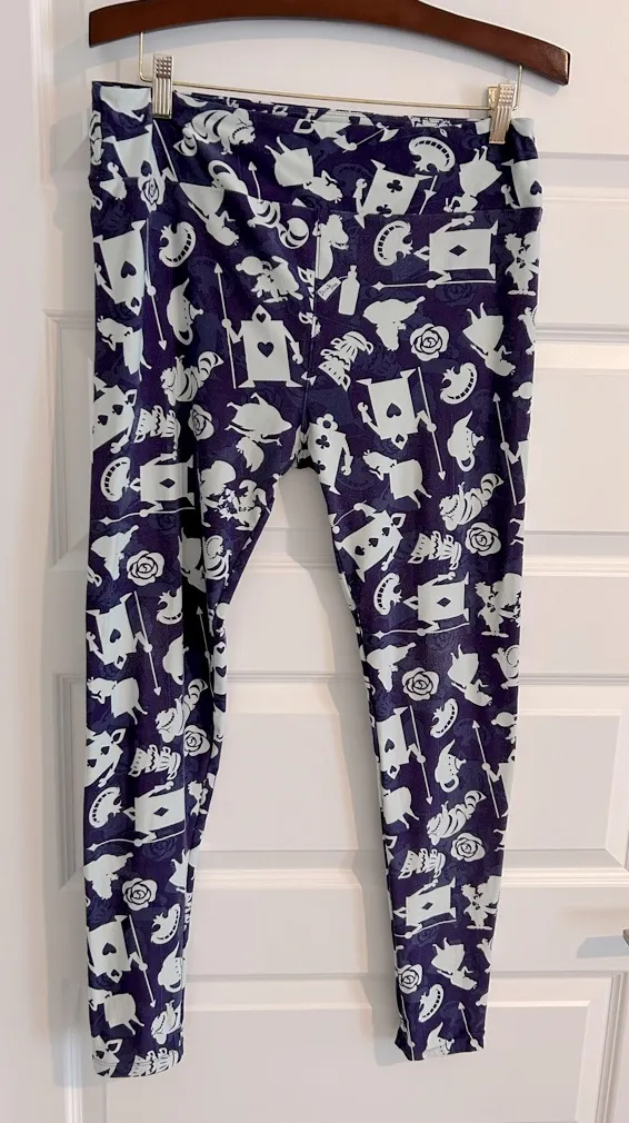 Lularoe Disney Alice in Wonderland leggings, purple white, size Tall and Curvy TC Rare unicorn print... Show more