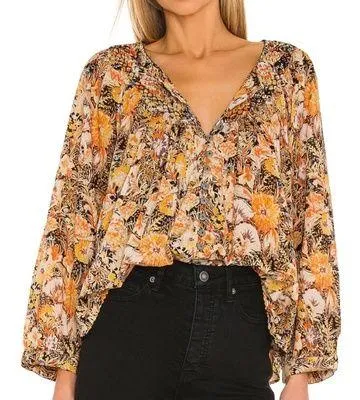 Free People Cool Meadow Midnight Combo Top In Multi color. Boho long sleeve top is featured in a lig... Show more