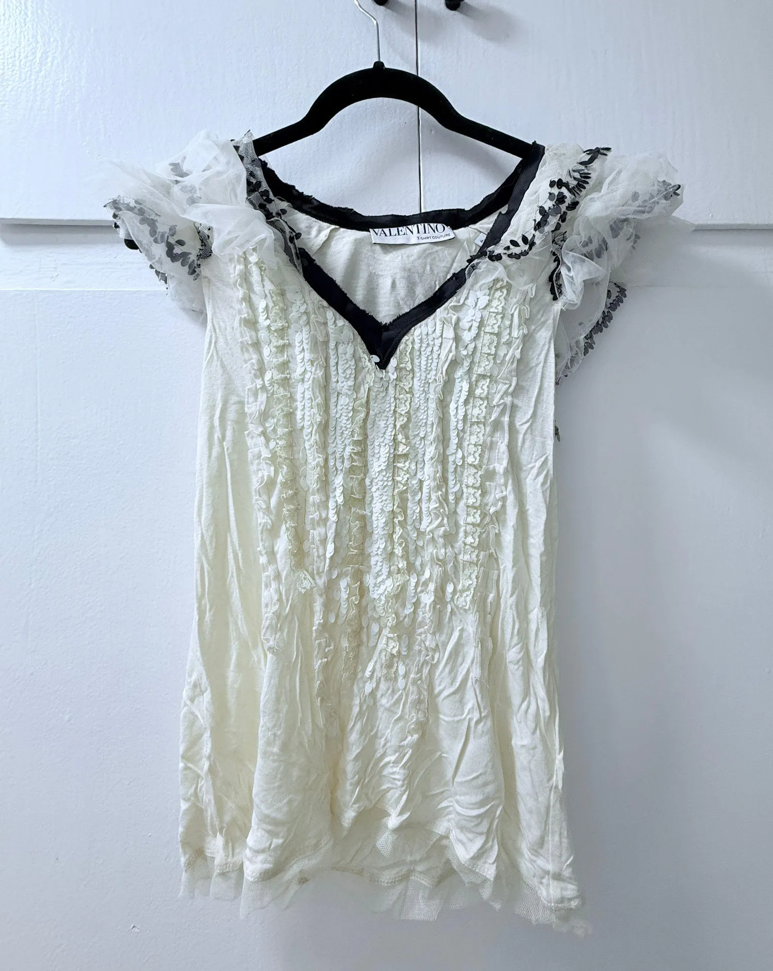 Valentino Garavani VALENTINO Vintage Beaded Tshirt Couture White Size 4 - $209 (53% Off Retail) - From Abi