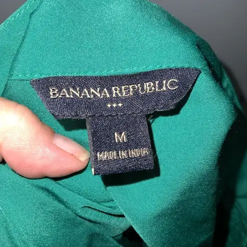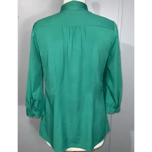 Like New Banana Republic Green (Rainforest Teal) Satin Eye Loop Button Front 3/4 Sleeve Button Cuff... Show more
