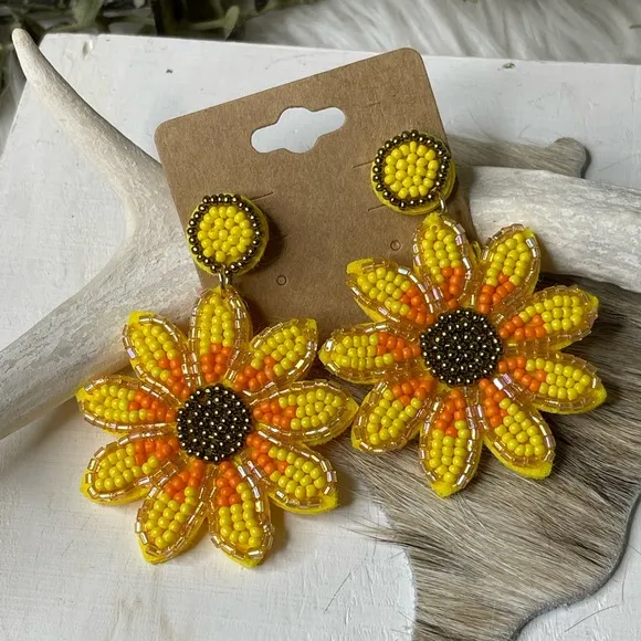 Sunflower seed bead earrings. 2 1/2” lightweight handcrafted post earrings. Yellow - $16 (57% Off Retail) - From Kim