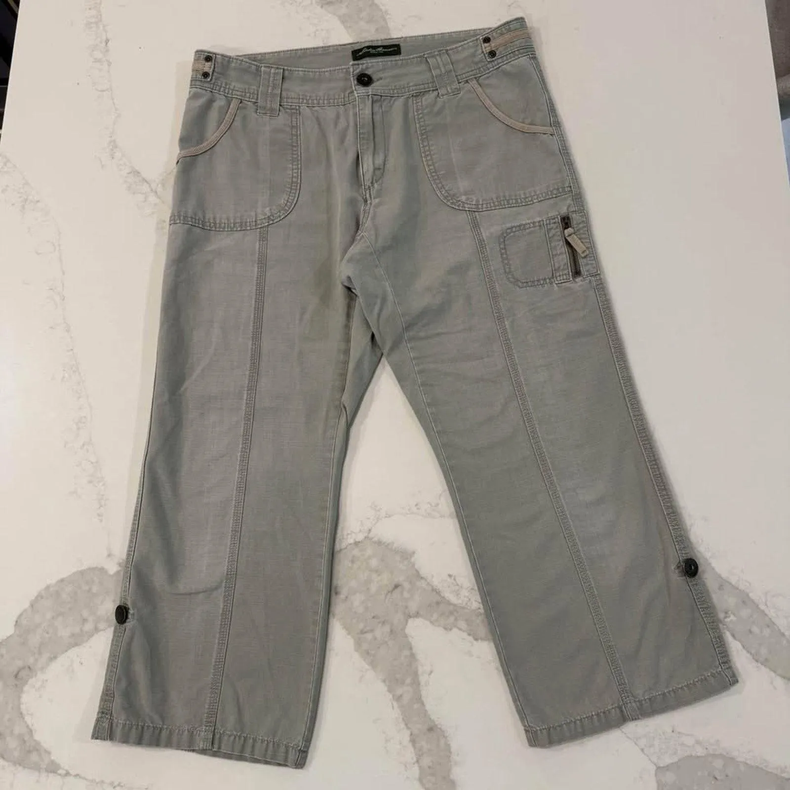 Eddie Bauer Blakely Fit Cropped Cargo Capri Utility Pants Women’s Size 8 Sage Green - Rolled Hem... Show more