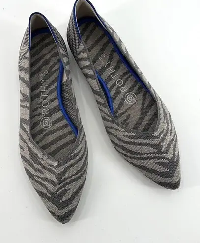 Brand: Rothy’s Department: Womens Size: W6.5 Color: Gray Toe Shape: Pointed Toe Style: Flat Shoes Closure: Slip on Material: Textile Upper 100% Recycled; Sole Material: Rubber Pattern: Zebra Condition: Pre-Owned. No visible flaws. Features: - Pointed Toe - Removable Insole - Ecofriendly - Unique knit construction - Zebra Pattern See all pictures for details. OFFERS ARE WELCOMED - Ships Same/Next Day