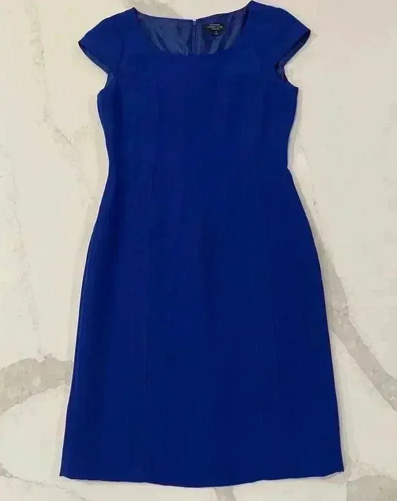 Tahari Arthur S. Levine Royal Blue Crepe Cap Sleeve Career Dress Women’s Size 4 Lined - Belt Loops - Knee Length In good condition! #tahari #pencil #career #kneelength #corpcore #corporate #classic #minimalist #preppy #university #professor #specialoccasion #party